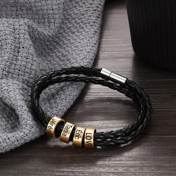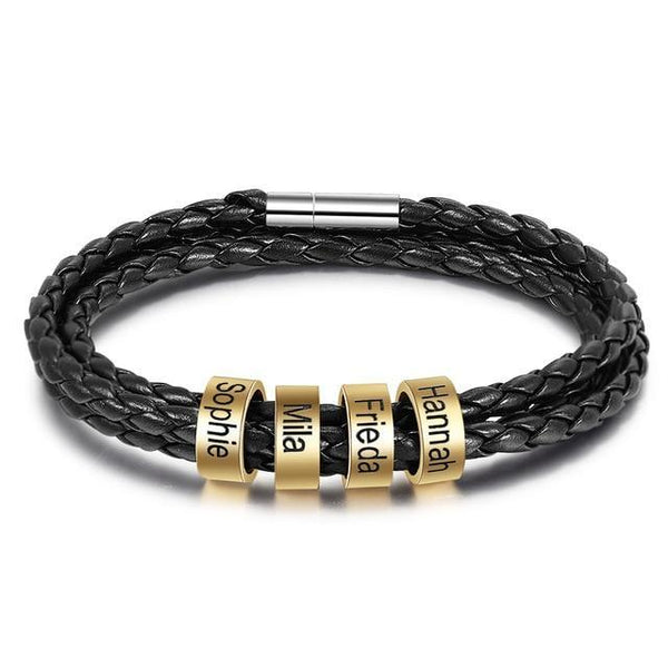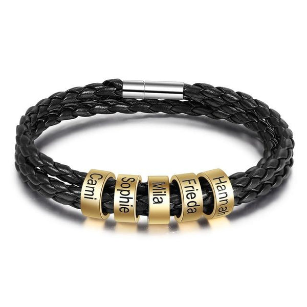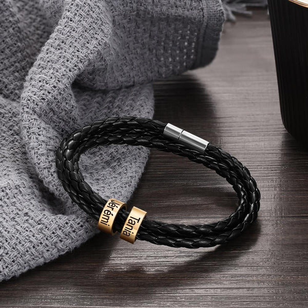 Dieses personalisierbare Lederarmband mit Metallringen für die Lieblingsmenschen ist ein ideales Geschenk für Männer oder Lederliebhaber. Suche Dir aus, wie viele Namen das Armband tragen soll und gib einfach die Namen bei der Bestellung an.