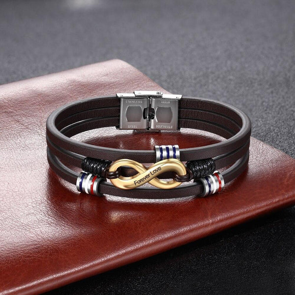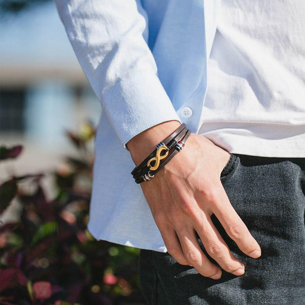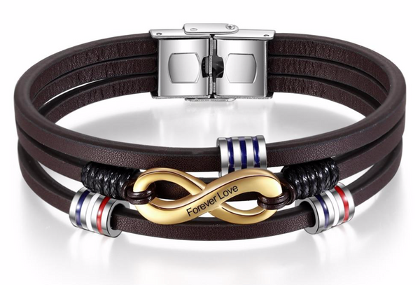 Wir haben da garantiert das richtige für die Männer dieser Erde: Dieses Lederarmband mit dezetem, personalisierten Unendlichkeitszeichen.